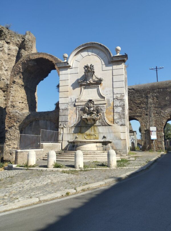The walk continues along the ruins of the many waterways that reached the center of ancient Rome, to fill a tank near today’s Porta Maggiore. This is the end point of the tour, with many private and public transport options available.